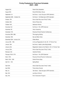 Preschool Schedule 2025-2026